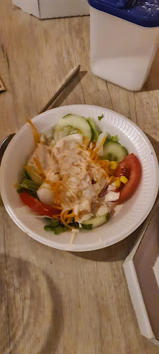 Das Dressing ist kein Essig Öl Dressing im herkömmlichen Sinne, sondern so ein eingedicktes fertig Dressing, wie man es aus der Flasche kennt. Dabei bestelle ich Essig Öl Dressing gerade weil ich "nur" Essig und Öl im Salat möchte! (Naja, immerhin kann man auch ohne Dressing bestellen) ansonsten war er frisch, Gurke, Eisbergsalat, Tomaten, Maiskörner, Zwiebeln und Geriebene Karotten. Mein Fazit: Ich probiere nächstes mal einen anderen...