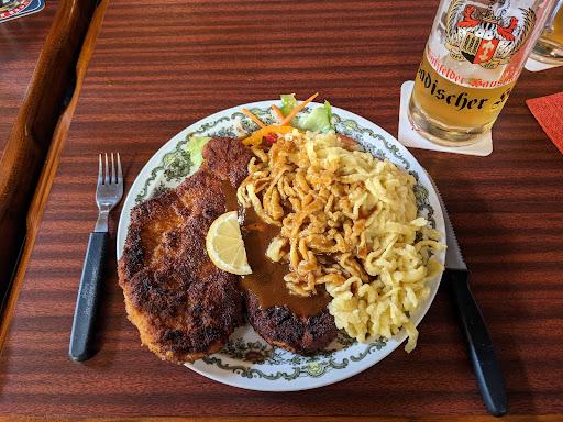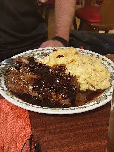 Essen eine Katastrophe. Sauerbraten hat gestunken wie alter Käse,nach dem reklamieren wurde nichts probiert oder daran gerochen sondern nur gesagt das das Personal ihn mittags auch gegessen hätte und da alles gut war. Ich bin auch aus der Gastronomie und weiss wie Sauerbraten schmeckt,und so sollte man mit Beschwerden und Kunden nicht um gehen. Wenigstens an Tisch kommen und den Sauerbraten kosten ob er gut ist oder nicht,aber das war wohl zu viel verlangt. Kartoffelsalat für 4,20 war Konvienienc, nicht selbst gemacht. Schnitzel war ok,aber nichts wo man nochmal essen müsste. Alles in allem nicht zu empfehlen, nie wieder. Spinnweben an den Fenstern,und darunter ein Mückenfriedhof auf dem Fensterbrett. Das hätte mir schon sagen müssen,lieber nicht dort Essen. Mir unverständlich das es trotz dem miserablen Essen voll war und die Bewertungen gut. Wenn es ginge hätte ich null Sterne gegeben,da es das schlechteste Essen war was ich je gesehen habe. Leider musste ich einen Stern vergeben um die Bewertung ab zu geben,aber...
