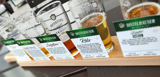 Read moreIch war dienstlich in Tauberbischofsheim. Am Abend vor dem Tagesmeeting gingen Freunde und ich etwas Essen. Nach Zwei-drei Fehlversuchen fuhren wir zum Diestelhäuser Brauhaus. Im ersten Moment dachten wir , dass in diesem Gewerbegebiet uns nicht Großartiges erwarten könnte. Das Gegenteil war der Fall! War die vorherige telefonische Anfrage ( zum empfehlen, dies zu tun ) äußerst freundlich und positiv beschieden worden, sind wir mit zuvorkommender Höflichkeit schnell und aufmerksam platziert und bedient worden. Wir bekamen sofort in kleinen Gläsern Probebiere des Hauses zum Verkosten serviert. Auch andere Kleinigkeiten der guten Küche wie sauer eingelegte Wildschweinhäppchen wurden zur Probe gereicht. Die sehr nette Bedienung klärte uns über die Bierspezialitäten des Hauses auf und informierte uns zu den angebotenen Speisen. Es dauerte auch nicht lange, dann standen die Köstlichkeiten vor uns. Der regionale Kalbsbraten war hervorragend und speziell das Dessert, zweierlei Mousse an Zimtplaumen mit Zimtgebäckstreifchen brachte die Seele zu einem breiten Lächeln ! Abgerundet mit den Bierspezialitäten ( und hier habe ich mich in das Helle verliebt ) war dies ein angenehmer, toller Abend ! Herzlichen Dank dafür diesem Team ! Wir sind als ahnungslose Gäste gekommen und haben es als Freunde des Hauses verlassen ! Der nächste Besuch in dieser Gegend wird uns wieder dorthin führen !...