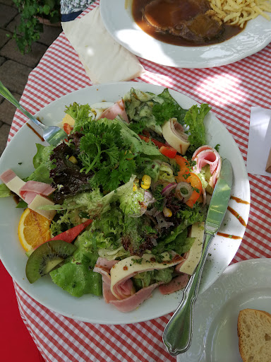 We arrived late (20:45) and the kitchen closes at 21:00. However we still were able to have dinner here. We were helped by very friendly staff. The food was really delicious and it filled good. We even got offered a doggy bag to take the leftovers home. It’s a beautiful restaurant with a nice atmosphere. There is a nice garden where you can also eat. The restaurant serves traditional German food and the waiters don’t hesitate to help if you don’t know what something is/looks like. The only downside is that there is no card payment possible. There is an atm within 2...