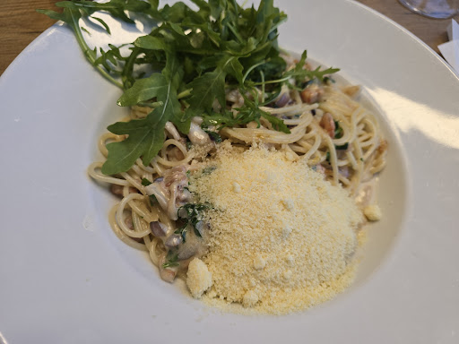 Read moreDie Pizza ist okay aber von Italien sehr weit weg, meine Frau bestellte die Nudeln mit Meeresfrüchten wobei die Meeresfrüchte wohl noch irgendwo im Meer schwammen. Ich nahm die Carbonara , ein kleiner Tipp an den Gastronom, für den Preis von 10 Euro für diese kleine Schale Nudeln kann man wenigstens Qualität erwarten. Meine Carbonara war schrecklich, zum abbinden der Sahne Soße wir das komplette Ei verwendet, Eiweiß hat in der Carbonara nichts zu suchen, genau so wenig wie Schnittlauch 🫣Apropos suchen, ich habe versucht den Schinken zu finden, nach einer halben Stunde habe ich dann aufgegeben. Ich möchte die Pastaria auch nicht schlecht reden, aber wenn ich für 4 Gerichte die eigentlich keine große Herausforderungen sind 60 Euro bezahle, dann verlange ich normale Qualität, und nicht etwas ,wie gewollt und nicht gekonnt. Wer die Italienische Flagge als Aushängeschild bewirbt, der sollte sich auch mit der Italienische Küche beschäftigen.