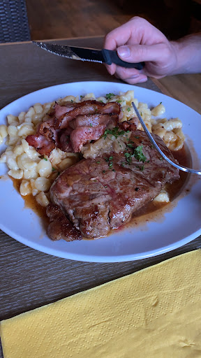 Read moreWäre alles in Ordnung gewesen, ABER: um 18:05 angekommen, um 19:15 war mein Essen immer noch nicht da. Wartezeit war also mindestens 1.25 Stunden, eher mehr und das für ein relativ einfaches Gericht. Vorher angekündigt, dass es zu längeren Wartezeiten kommt, würde nichts, ich hätte sonst nämlich nichts bestellt, wollte zu der Zeit als das Essen kam, eigentlich schon wo anders sein. Ich bereue, dass ich das einfach so hingenommen und sogar noch Trinkgeld gegeben habe. Rechtliche gesehen dürfte man schon nach 30 Min gehen, wenn man in der Zeit dreimal nach dem Essen gefragt hat. Nach 45 Minuten steht einem schon eine Preisminderung zu, nach einer Stunde und mehr sowieso - kann man überall nachlesen! Sowas darf ja bei Unterbesetzung und vielen Gästen von mir aus auch mal passieren, aber es MUSS einfach vorab auf die lange Wartezeit hingewiesen werden, damit man als Gäste die Chance hat, seinen weiteren Abend zu planen. Essen war ok, Gemüse und Kartoffeln jedoch komplett ungewürzt...