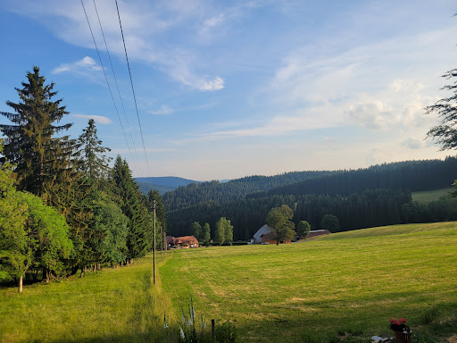 We were looking to stay in the Black Forest close to the amenities of Lake Titisee. It was our third trip to the area, but the first in the summer. We were promised temperatures in the mid to late 20s and we were not disappointed.||||Making our reservation was a challenge. I have no German and any email communication in English led to no response. We tried again, via Google translate and were more successful. They had a room for 3 and a room for 1 - all at a price far more affordable than if we were right on the lake itself. Half board was offered for an extra EU14-17 per person per night, which we planned to do. ||||On arrival, we were greeted with blank expressions. I started panicking that we hadn't reconfirmed our reservation in the week before. Happily, our names were in the reservation book and we were shown to our rooms. Both rooms were large and airy. They were traditionally decorated and had multilingual satellite TV too. The bathrooms were en-suite; we had balconies with a side on view of the valley below. I would call it the equivalent of 3*.||||There was a barbecue on the first night. On subsequent nights, there was a choice of al-la carte or set menu. We actually went al-la carte throughout. The main courses are substantial and we often were satisfied with that alone. This was paired with delicious local beer and finished off with some schnapps or some German wine. It is unpretentious fare and exactly what we wanted. The staff are busy, friendly and attentive. You can tell that this is a local hot spot as the diners were not restricted to being hotel guests. We ate in for all of our four nights - I think that if we were staying any longer we would have ventured a bit further to avoid repetition, though we hadn't exhausted the menu.||||Most of the local sights are within an hour's drive of the guesthouse. The lake is 10 minutes away. There is also a bus stop just outside but, I'm not sure how much sightseeing you would get done without a car or a motorbike. Also, there is no lift, so this venue is not ideal for the disabled. The only other warning is that the wifi and mobile phone access is very limited.||||We loved it and will be back for another summer holiday...