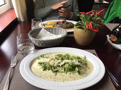 Nun zum eigentlichen Betrugsversuch des Restaurants: Wir haben seit vielen Jahren einen Schlemmerblock (das günstigere Hauptgericht ist damit kostenlos) und waren damit bereits in vielen Restaurants essen und wissen daher, dass man zu Beginn erwähnt, dass man diesen dabei hat. Das taten wir auch und hatten den Block auch die ganze Zeit zusätzlich sichtbar auf dem Tisch liegen. Die Kellnerin die uns die Karte brachte und der wir das sagten, meinte es wäre kein Problem. Soweit so gut. Als wir mit dem Essen fertig waren, kam die Chefin von sich aus mit der Rechnung zu uns - wir hatten diese noch gar nicht verlangt - und sagte in einem unverschämten Ton, wir hätten nichts vom Schlemmerblock gesagt und es wäre nun alles schon getippt und aus steuerlichen Gründen könnte sie das nun nicht mehr stornieren, wir sollen gefälligst alles bezahlen. Schonmal seltsam, dass sie von sich aus den Schlemmerblock ansprach, wenn sie doch angeblich nicht wusste, dass wir einen hatten... Wir sagten, wir hätten das aber der Kellnerin gesagt die uns die Karte brachte. Daraufhin ging sie weg und kam nochmals und bat uns weiterhin in unverschämten Ton an die Rechnung um 6 Euro zu reduzieren. Die eigentliche Einsparung mit dem Schlemmerblock wäre aber 21 Euro gewesen. Wir lehnten ab und verwiesen darauf, dass wir das der Kellnerin gesagt hätten. Darauf brüllte die Chefin lautstark durch das ganze Restaurant, ihre beiden Mitarbeiter sollen sofort kommen. Der männliche Kellner, der unser Essen aufnahm, sagte, er wusste nichts vom Schlemmerblock. Okay, ihm hatten wir es auch nicht gesagt, er hätte ihn aber sehen müssen, da der Block offen auf dem Tisch lag. Die erste Kellnerin, die uns die Karte brachte und der wir mitteilten, dass wir den Schlemmerblock hatten, log doch glatt und sagte, wir hätten nichts gesagt. Als wir entgegneten, dass wir es aber gesagt hätten und eine neue Rechnung ohne das günstigere Hauptgericht wollten, wurde die Chefin noch pampiger und brüllte im Restaurant herum, so dass es alle Gäste mitbekamen, dass sie nun die Polizei rufen wird und wollte mir auch noch den Schlemmerblock wegnehmen. Vermutlich um die Beweismittel zu beseitigen. Ich reagierte zum Glück schnell und konnte den Block sichern und entgegnete, sie solle doch die Polizei rufen, wir würden gerne warten. Daraufhin stampfte sie weg und auf einmal kam sie dann doch mit der reduzierten Rechnung. Geht doch. Dafür war nun angeblich das Gerät zur Kartenzahlung kaputt. Okay, bezahlten wir halt in bar. So ein Verhalten habe ich noch nie erlebt. Das war wirklich ein Betrugsversuch, an dem sich offenbar alle Mitarbeiter beteiligten. Auch unsere Portionen waren deutlich kleiner als die an den Nebentischen. Offenbar scheint man hier gezielt Betrug mit dem Schlemmerblock zu betreiben. Nichtmal für lau würde ich jemals wieder in dieses Restaurant gehen! 0 Sterne...