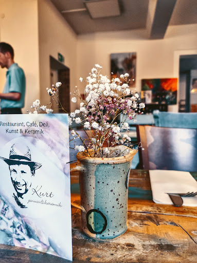 Read moreIn zentraler Lage von Schwenningen findet sich versteckt das "KURT, Genuss & Keramik", ein kleines, aber ausgezeichnetes Restaurant, das kulinarische Genüsse und kunstvolle Keramik auf einzigartige Weise verbindet. Schon beim Betreten spürt man die warme, einladende und dennoch ungezwungene Atmosphäre, die u.a. durch allerlei handgefertigte Keramiken, sei es als Tischgedecke, Deko oder auch Verkaufs- u. Austellungsstücken geprägt ist. Das Menu bietet frische, regionale Küche, serviert auf handgefertigtem Steingut. Jedes Gericht ist ein visuelles und geschmackliches Highlight. Vom Amuse-Gueule über das Birnen-Carpaccio weiter zum Auberginen-Cordonbleu bis hin zum finalem, ausbalancierten Espresso, so mein Menü an diesem Abend, Genuss pur. Die Kombination aus feinen Aromen gepaart mit der ansprechenden Präsentation auf ebenfalls handgefertigtem Geschirr macht das Essen hier zu einem multisensorischen Erlebnis. Das aufmerksame, freundlich-kompetente Service-Team nebst coolem Chef runden den durchweg positiven Gesamteindruck der Location ab. Hierher kommt man...
