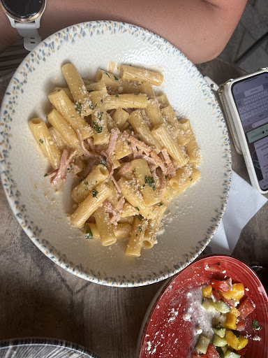 Es sind zwei Dinge, die mich besonders stören: Das gesamte Restaurant ist mit getrockneten Eukalyptuszweigen dekoriert. Man betritt den Raum und es „stinkt“ grausam & penetrant nach Eukalyptus. Mussten uns nach draussen setzen. Ich hatte Spaghetti mit Sahne-Schinken Sauce und diese wird mit Unmengen an frischer Petersilie gereicht. Wer rohe Petersilie nicht sonderlich mag, hat verloren. Ansonsten war das Essen geschmacklich ok und die meisten Pasta Gerichte...