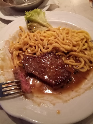 Read moreDas etwas in die Jahre gekommene Lokal versucht durch überschaubare Küche zu überzeugen. Das abgenutzte Ambiente hat sicher auch schon bessere Tage gesehen. Über den Läufer sind sicher schon ganze Völkerwanderungen in Richtung WC gegangen. Die Einrichtung hat kein Konzept. Irgendwelche Bilder an der Wand. Zu den Speisen kann man nicht viel sagen. Empfehlenswert sind die Kroketten. Das war's dann aber auch schon. Der Rest war eher "funktional". Salat ohne Rafinesse und eher eintönigen Dressing. Wer bei dem Namen "Schnitzelhaus" in der Erwartung einer überraschenden Auswahl an Schnitzel dieses besucht, wird eher enttäuscht werden. Kein Kalbsschnitzel vorhanden. Preis / Leistung ist nicht gerechtfertigt. Das Lockal wäre etwas für Frank Rossin - er könnte sicher helfen ;-) Parkplätze vor dem Haus vorhanden. Fotos lohnen sich nicht - besser als die vorhandenen wird es...