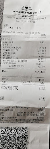 Schwierig zu bewerten. Als erstes, Service ist super freundlich und sehr zuvorkommend. Biergarten selber liegt hinter der Gaststätte im Hof und ist freundlich gestaltet mit Hopfenpflanzen über den Köpfen. Gaststätte ist gemütlich und macht einen tollen Eindruck. Wir hatten die Brauereitapasplatte für knapp 12 Euro und die war wirklich sehr lecker und abwechslungsreich und toll gemacht. Der Preis hat hier gestimmt, war sehr fair. Was uns nicht so gefallen hat, ist das es wenig von Rind oder Pute gibt, Hähnchen gar nicht. Es gibt Hauptsächlich Schwein und wenn man Rind möchte, muss man locker 20 Euro hinlegen. Dass fanden wir sehr Schade. Menschen die kein Schwein mögen und nicht auf Kässpätzle ausweichen möchten, sind hier fehl am Platz. Das Bier: Meine Bekannten und ich sind Rothaus Fans und ab und zu darf es auch einmal ein Hefeweizen von Hirsch oder von Waldhaus sein. Uns hat das Bier nicht vom Socken gehauen. Unsere Favoriten sind weiterhin die Alten Biere, keines vom Hader Karle. Als wir da waren gab es zudem ein Herbstbier, dass wirklich furchtbar war, mit starkem Nachgeschmack nach Honig! Fazit: Das Bier hat uns nicht geschmeckt, was bedeutet, dass nur weil man selber braut, es nicht heißt, dass es gut ist. Vom Essen her, gibt es eindeutig zu wenig für "Nichtschweinesser" und wenn dann zu teuer (Rind ab 20 Euro). Die Gastätte selber ist gemütlich und der Service toll. Wir waren nach unserem Besuch uns einig, dass es zwar gut war, dass wir aber kein zweites Mal...