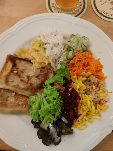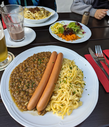 Ein schöner Ort, man kann sehr gut draußen sitzen, Hühner wuseln um die Tische herum, das Ambiente passt wunderbar zum Bauernhausmuseum. Wir sind etwas später zu unserer Gruppe gestoßen und haben noch Essen nachbestellt. Nach einer Stunde war uns klar, dass man uns vergessen hat. Wir wurden mehrfach vertröstet und schlussendlich zog unsere Gruppe ohne uns weiter, da wir immer noch auf das bereits bezahlte Essen warteten. Das, was wir uns dann einpacken ließen, schmeckte gut - aber die Stimmung war im Keller. Ich hab hier gelesen, dass der sonst nette Service öfter mal überfordert ist - wenn es also zu lange dauert, einfach mal...