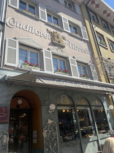 Meine Mutter & ich sprachen heut mit Hr. Conzelmann, er war sehr freundlich & erklärte mir warum er seit 4.2017 meist nur 1 Apfelstru- del in der Vitrine hat, es hat nichts mit Bequemlichkeit zu tun sondern er will das Maximale mit weniger Früchten od Material, verdienen. Es gibt keine E- Stoffe oder chem. Zusatzstoffe in den guten Kuchen. Schon als kleiner Knirps rannte Hr. Conzelmann (Konditormeister + Chef)!im Café Albrecht & der Backstube herum, er war angetan von den tollen, vielen Kuchen + Pralinen! Hr. Conzelmann kommt aus Waldshut, nach seiner Konditorlehre im Albrecht, arbeitete er in der Schweiz. Jetzt will er gern diese Preise machen. Die tollen Rezepte von den Zimmermanns werden noch zu 100 % verwendet. Meine Familie + wir Kinder kommen seit 1971 ins Café Albrecht, nach der Schule kaufte meine Mama oft 🍎- + Quarkkuchen v. Fr. Zimmermann sie war die Seele dieser Konditorei, für uns alle. Äpfel wirken entgiftend 1 🍎 pro Tag hält den Arzt fern! Apfelstrudel + Café schmeckte mir gut, es war 14.30 & hatte noch nichts gegeßen, € 6.60 dafür, ist teurer wie in München, im berühmten Café Rischart, am Marien Platz! Schade ihr seid das einzige Café in W'hut, das um 18 h, Mo-Fr & am Sa schon um 16.30 h (innen & draußen um 17 h schließt). Café Ratsstüble hat täglich frischen Apfelkuchen + ist günstig & auch 2017 war's so, laut dem Konditormeister, er richtet sich nach seiner Kindschaft, sie schließen um 18.30 & am Sa um 18 h. Als die Zimmermanns da waren, gab's tägl. 1 gedeckten + 1 ungedeckten Apfelkuchen f. € 1.80, (ab 7.2015 dann kaum noch), er schmeckte super. Euer Apfelstrudel ist gut, aber recht teuer im Café Rischart, in München H.Bahnhof kostet 1 sehr großes Stk € 2.80. Schade, dann geh ich nach mein. Einkauf, um 18 h in 1 anderes Café od. Lokal, weil ihr schließt. Am Nachmittag, sollten auch die Sonnenschirme auf der Terraße aufgespannt sein, das schützt die Haut vor Hautkrebs, die Zimmermans, taten das auch immer, das war beßer wenn's heiß war + gemütlich echt schade, dabei ist das Albrecht 1 Goldgrube, wenn man's richtig angeht! Mir fiel auf als ich mit Hr. Conzelmann + seiner Freundin sprach, daß sie mich mit 1 roten Kopf wütend anstarrte & nichts konstruktives zu unserem Gespräch beitragen konnte. Schließlich ist der Kunde König, er bezahlt die Löhne der Mitarbeiter mit seinem Einkauf ! Die Damen hinter der Vitrine sind nett + packen gut ein, Männer können das nicht so gut, es braucht Fingerfertigkeit, da schulte Frau Zimmermann die Damen sehr gut, sie & ihr Konditormeister Ehemann, waren 1 A+++ / ab Mai gibts keinen Apfelstrudel mehr aber im Café Ratsstüble, in Kaiserstr. finden sie welchen auch am So. Strudel mach ich selbst aber diverse 🍎kuchen lieben &...