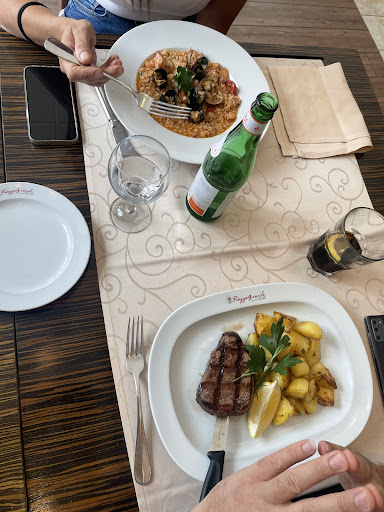 Abbiamo ordinato una carbonara, un piatto di carne tipo tagliata con contorno di patate al forno, e un risotto alla pescatora. • La carbonara era davvero buona, fatta con pasta tipo bucatini (probabilmente fresca e fatta in casa, si sentiva!), ma purtroppo c’era un po’ di panna e al posto del guanciale c’era pancetta confezionata. Non perfetta, ma apprezzabile lo sforzo. • La carne era tenera e ben cotta, accompagnata da patate al forno saporite. • Il risotto alla pescatora ci ha sorpresi: eravamo un po’ scettici sulla freschezza del pesce (probabilmente congelato), ma il gusto era eccellente.