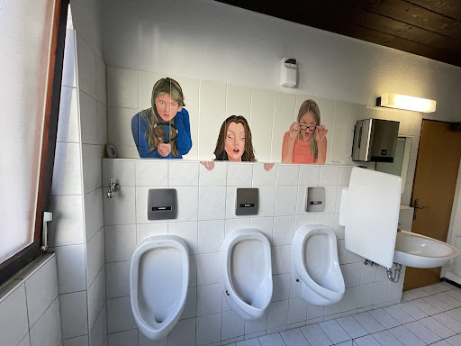 Read moreAm Eingang zur Altstadt von Waldshut vor dem Stadttor gelegen waren wir zu zweit hier beim Mittagessen. Der Service war freundlich, entgegenkommend und flink. Wir konnten schon zu Beginn erkennen, dass uns große Portionen erwarten würden. Wir beide - in den 70ern - schaffen das nicht mehr. Deshalb wollte ich für mich eine kleine Portion Kutteln und gleichzeitig für meine Frau und mich die Filetspitzem vom Rind mit Pfeffersauce und Rösti essen. Ich war scharf auf die Kutteln. Denn wo bekomme ich heutzutage noch Kutteln in einem Restaurant serviert? Wir mussten zwar recht lange warten. Vermutlich werden Kutteln nicht so oft bestellt. Und selbst wenn sie vorgekocht und eingefroren waren, mussten sie sicherlich noch eine Weile köcheln und in der Sauce ziehen. Sie haben herrlich geschmeckt. Die anschließenden Flatulenzen waren wohl den Zwiebeln geschuldet. Aber ohne diese würden sie nicht schmecken. Kutteln waren mal ein „arme-Leute-Essen“. In den 70er-Jahren konnte man sie am Viktualienmarkt in München noch gekocht, in Streifen geschnitten und gesalzen für 1,50 DM kaufen und aus der Tüte essen. Heute werden sie gerne als Hundefutter verkauft. Es ist kein leichtes Essen, aber für den, der es mag, lohnt es sich dort im „Rheinhof“ Kutteln zu essen. Erwähnenswert sind zwei Dinge: Der Claim auf den papierenen Tischuntersetzern ist bemerkenswert ein Widerspruch in sich: „So möchten wir, jahreszeitlich orientiert, voller bezaubernder Augenblicke, schnörkellos und mit klarem Blick auf das Wesentliche verwöhnen“ Die Ausstattung der Herrentoilette mit deren Urinalen (siehe Foto) Insgesamt war es ein gelungener Aufenthalt. Wir hatten Glück mit dem Wetter und konnten draußen sitzen. 50,- EUR und 5,- EUR hat uns der Spaß gekostet. Das war es auf...
