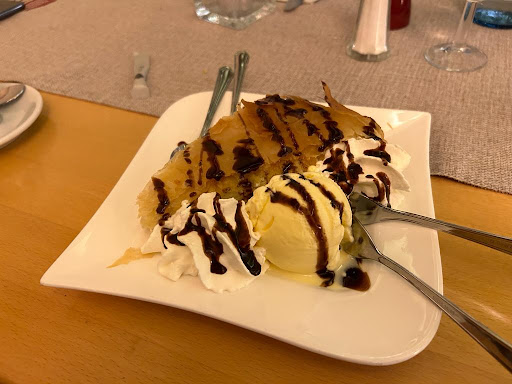 Allerdings warteten wir im Anschluss an die Bestellung zusätzlich eine satte Stunde (!!) ohne ein Anzeichen auf das Essen. Auf Nachfrage wurde uns auf nicht allzu freundliche Art deutlich gemacht, dass es "bald" kommt. Es wurde wohl schlichtweg vergessen, da einige nach uns erschienene Gäste bereits munter beim Dessert angelangt waren. Gute 15 Minuten später bekamen wir die (meisten) Gerichte auf den Tisch - zu unserem Pech mit durchgängig unvollständigen Beilagen und allerhöchstens lauwarm. Ein Hauptgericht wurde nochmals gänzlich vergessen. Zur Krönung gab es auch noch teilweise eiskalte/halb gefrorene Fischgerichte. Geschmackliche Vielfalt wurde gänzlich vermisst: es schmeckte wirklich alles nur nach Knoblauch. Die Beilagensalate waren ohne den typisch griechischen Charme. Kein Käse, keine Oliven...