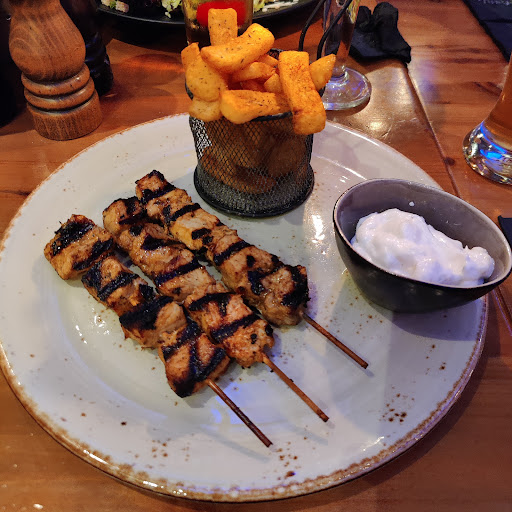 Read moreWir sind heute am Ostersonntag mit Freunden dort essen gewesen. Leider hat das Lokal sehr nachgelassen. Wir waren so ziemlich die ersten Gäste zum Mittagessen, und mussten zuerst längere Zeit warten, bis endlich Getränke aufgenommen wurden. Der junge Mann, welcher uns bedient hat, sprach sehr schlecht Deutsch. Zum Essen wäre zu sagen, dass der Salat tatsächlich nur aus grünem Salat, 2 halben Tomatenscheiben und 2 Radieschenscheiben bestand, und das Dressing geschmacklich einfach nur ölig war. Ich hatte Hähnchenbrust in Pfefferrahmsauce, und mein Mann Souvlaki. Sowohl die Hähnchenbrust, als auch das Souvlaki hatte breite, schwarze Grillstreifen, was einen bitteren Geschmack beim Essen hervorgerufen hat. Die gegrillten Pepperoni waren fast kalt, woanders kommen die heiß oder wenigstens sehr warm auf den Tisch. Für zusätzlich Tzaziki wird 2.50 € berechnet, für eine zusätzliche Pfeffersauce 4.90 € ! Das ist entscheiden zu teuer! Schade, dass das geschmacklich und portionstechnisch so dermaßen zu Wünschen übrig läßt. Wir waren zuletzt vor einem Jahr dort , da hatten wir noch einen deutlich besseren Eindruck. Auch das bereits bei den anderen Rezensionen erwähnte Zusammenstreichen der Speisekarte stimmt, die Auswahl ist wirklich mäßig. Der Service für Reservierungen hat ebenfalls nicht geklappt, es kamen mehrere Familien, die für z.B. für 7 Personen reserviert hatten, und dann an einem kleinen Tisch sitzen mussten, bis eine "Lösung gefunden wurde", sie an einen entsprechenden Tisch mit ausreichend Platz zu setzen. Das Ganze haben wir 3x mitbekommen !. Sowas geht einfach nicht, und verärgert nur die Kundschaft. Preis-Leistungsverhältnis passt hier leider keinesfalls, für uns gibt es keine...