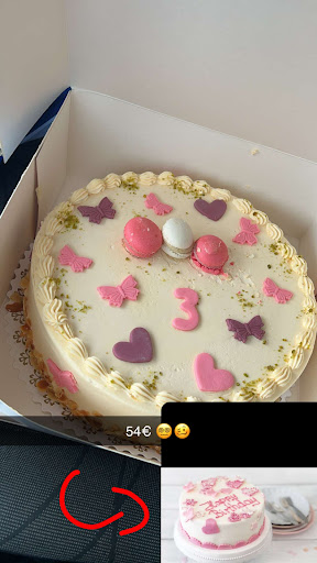 Read moreHabe ein Kuchen bestellt gehabt für meine kleine schwester auf meinem namen. Ich kam an erst hieß es das nix da sei und dann nach paar anrufen sollte es irgendwo rumliegen. Als er dann gebracht wurde und mir gezeigt wurde sah er einfach nicht so aus wie ich ihn bestellt hatte. Es war sogar MEIN name auf den kuchen darauf obwohl er für meine kleine Schwester ist. Dann wurde mein Name vor Ort entfernt und mit Macarons drüber gepfuscht welche alle im Karton rum geflogen sind weil sie nicht richtig drauf waren. Jetzt hab ich für meine Schwester heute zum 3 jährigen ein Nicht so gewünschten Kuchen wie sie es wollte mit abdrücke von meinem und nicht ihren name drauf und das alles für ganze 54€ 😵💫. Auch als ich gebeten hatte den Führungspersonal zu sprechen nach mehren anrufe wurde mir einfach aufgelegt. Danke für denn...