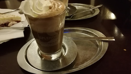 Read moreEs war Montagnachmittag und obwohl nicht viel los war, hat es eine ganze Weile gedauert bis die Bedienung kam und uns die Karte brachte. Leider war die Karte veraltet (wofür sich die Bedienung entschuldigte) und meine Begleitung musste sich mehrmals bezüglich des Tees umentscheiden, weil sie ihn nicht mehr hatten. Die Kuchenauswahl war sehr mager. Es gab überwiegend Torten. Wir entschieden uns für je ein Stück Frankfurter Kranz (war mir Alkohol) und Käsekuchen. Der Käsekuchen war fantastisch, ein Traum und auf jeden Fall zu empfehlen. Das leere Glas zum Teekännchen sah milchig und schmutzig aus und wurde reklamiert. Ein zweites Glas wurde gebracht, was deutlich besser aussah. Ich selbst hatte eine heiße Schokolade, welche zwar süß , aber nicht zu süß war. Das Auftreten der Bedienung war freundlich. Das optische Erscheinungsbild jedoch eher schmuddelig, was an der dreckigen Schürze lag. Mein Fazit, beim nächsten Mal probiere ich ein...