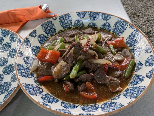 Nette Bedienung die ältere Dame war deutsch und die andere Dame asiatisch. Parkplatz vor dem Haus bzw hinter dem Haus waren genügend vorhanden. Der biergarten war okay aber man hätte ihn noch ein bisschen aufhübschen können. Die Blumen auf dem Tisch waren auch schon dem komposthaufen ein bisschen ähnlich. Also wie gesagt sie hatten ihre beste Zeit schon gehabt. So und jetzt kommen wir zum Essen was ja normalerweise in einem biergarten das i-Tüpfelchen sein sollte. Wir haben bewusst zwei unterschiedliche Gerichte genommen mein Gericht war Scharf aber die nette Bedienung hatte mir versprochen es ein bisschen milder zu servieren. Gut gesagt getan und auch bestellt. Das Essen wurde ein bisschen lieblos serviert auf einem Teller ein Kloß als reishaufen und auf dem anderen Teller das sogenannte hauptgericht. Die Bohnen die Erbsen und auch der Brokkoli ist mit Sicherheit gerade aufgetaut worden und war noch nicht ganz durch. Das Fleisch war in Ordnung aber das war auch schon alles. Im großen und ganzen kann ich diese Gaststätte nicht unbedingt empfehlen. Die getränkepreise...