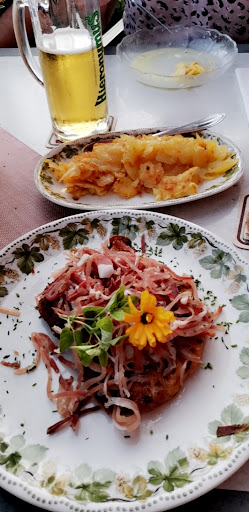 Read moreMan fühlt sich hier leider nicht wirklich als willkommener Gast. Es dauerte schon gefühlt eine Ewigkeit bis die Getränke nach der Bestellung serviert wurden. Zuerst aber das Positive, für die Hunde wurde sofort Wasser angeboten (das 10 Minuten später auch kam). Der Wurstsalat meiner Frau war, obwohl hauseigene Produkte angekündigt waren, allerdings sichtlich aus Fertigprodukten aufeinander gestapelt und ist ohne das Dressing zu verrühren serviert worden. Das dazu gereichte angeblich frische Holzofenbrot war ein simples und sehr trockenes Weißbrot. Die Bauernplatte von mir war vorsichtig ausgedrückt übersichtlich. Und wenn man mit hauseigenen Produkten wirbt, sollte man auch darauf achten, dass diese genießbar sind und richtig gelagert werden. Wurstwaren gehören z.B. gekühlt. Mein Schinken und mein Vesperspeck haben geschwitzt. Auch die andere Wurst war zu warm gelagert (heißer Sommertag). Die Leberwurst war zudem eine Leberwurst-Blutwurstmischung, dies hätte man ankündigen sollen. Der "Biergarten" liegt noch dazu direkt an einer gut befahrenen Straße, Gemütlichkeit kommt hier auch nicht auf. Definitiv unser erster und letzter Besuch und auch keine Weiterempfehlung Wert.