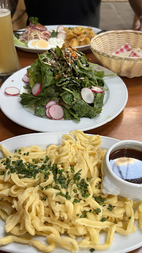 Read moreDieses kleine Lokal liegt etwas abgelegen von der Hauptstraße zwischen Wiesen und einem kleinen Bächlein. Das Ambiente ist sehr urig und gemütlich. Die Speisekarte ist zwar recht klein aber trotzdem ist die Auswahl (abgesehen von veganen/vegetarischen Gerichten) bunt gemischt. Der Flammkuchen war wirklich köstlich! Auch das Schnitzel und der hausgemachte Kuchen konnten uns überzeugen. Zudem war der Service wunderbar- freundlich, aufgeschlossen und die Speisen waren im Handumdrehen zubereitet.