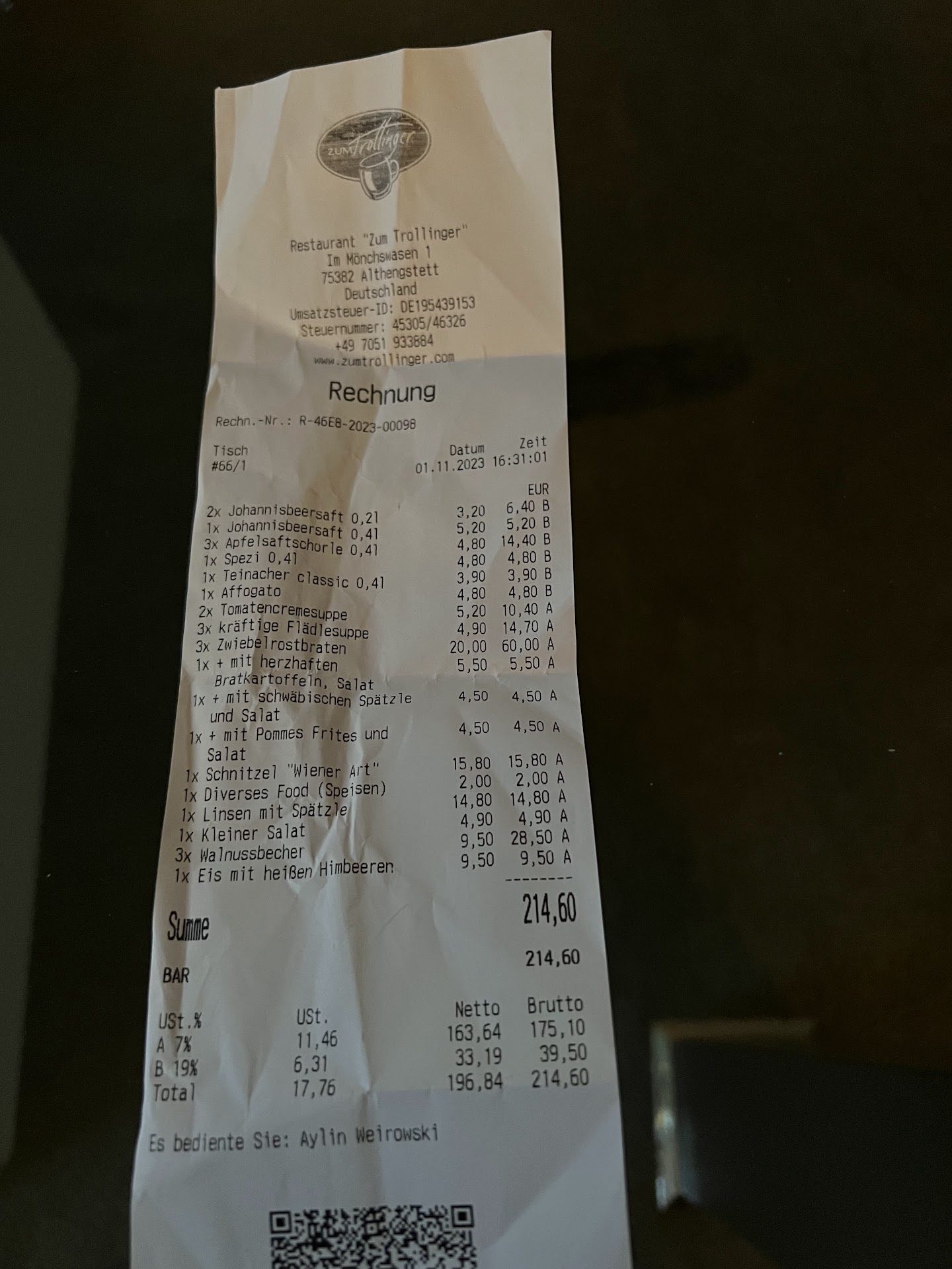 Für uns als Familie wird ein Besuch im Restaurant somit zu einem Luxus, den wir uns nur noch selten leisten können. Und wenn, dann werden wir in Zukunft dort hingehen, wo auch der Service stimmt. Schade. :-(