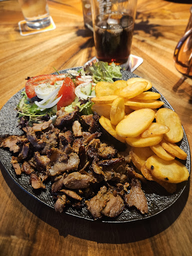 Read moreZunächst vorab erst einmal generell - das ist kein griechisches Restaurant. Weder das Ambiente (ist eher ein normaler Dorfgasthof), noch die Bedienung und schon gar nicht das Essen haben etwas mit einem griechischen Restaurant zu tun. Es schmeckt überhaupt nicht typisch griechisch, das Gyros kommt aus der Pfanne, der Beilagensalat hat auch nichts mit einem Bauernsalat zu tun, sogar die obligatorische Olive fehlt. Das Essen kam zwar extrem schnell (ca. 3 Minuten), schmeckte aber eben auch überhaupt nicht typisch griechisch und zumindest meine überbackenen Hähnchenspieße waren total ungewürzt. Noch nicht einmal einen Ouzo gab es zum Abschluss auf`s Haus und den gibt es ja nun wirklich überall beim "Griechen" und mit dem Gruß eines Gastes - "kalispéra" -wusste die Bedienung auch nichts anzufangen. Einzig die Preise sind...