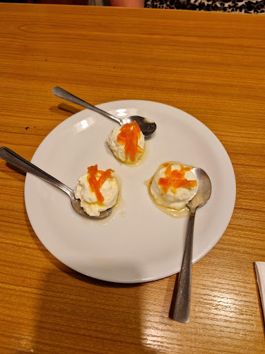 Nach dem Genuss von griechischer „Hausmannskost“ in dem Sinne, dass die Qualität und der Geschmack des kulinarischen Höhenflugs in einem korfiotischen Berggasthof in nichts nachsteht, gibt es hausgemachten griechischen Joghurt mit Honig und kandierten Karotten. Der Gaumen fährt Achterbahn.