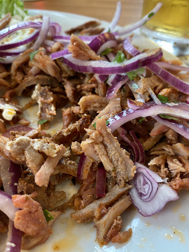 Aber der Inhaber gestattete uns, direkt vor der Treppe zu parken. Das Essen könnte frischer nicht sein und nicht fantastischer abgeschmeckt werden. Würzig, aber weder zu scharf noch salzig. Das Dressing ist ein Gedicht. Man schmeckt edle mediterrane Gewürze.