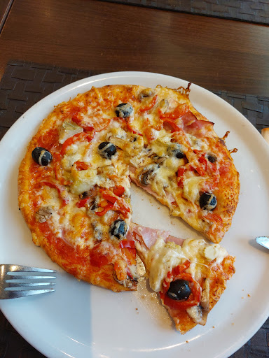Was uns dort als Pizza vorgesetzt wurde, war eine Frechheit. Die vegetarische Pizza sollte in Pizza Mixed Pickles umbenannt werden, sie war belegt mit sauer eingelegtem Gemüse aus dem Glas. Auf der Frutti di Mare befand sich ein undefinierbarer Mix aus aufgetauten geachmacklosen Objekten aus Gummi. Käse ist definitiv kein Mozzarella.