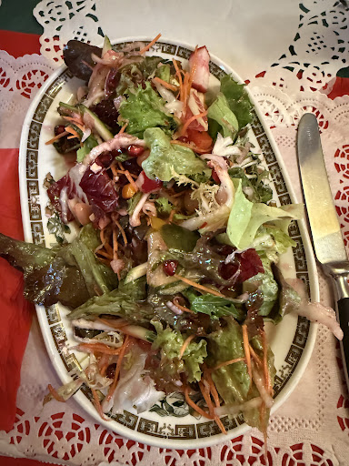 Even the smallest items on the menu are accompanied by a) a greeting from the kitchen in the form of a tasty mini soupette, b) an exquisite mini salat served with an incredible sauce, then c) main course freshly prepared, served on a hot, highly decorated plate.