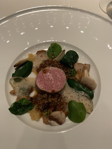Ambiente: posh new modern but a bit cold - luxury plates (e.g. Hering Berlin, Fürstenberg) Service: friendly and competent Food: good „greetings from the kitchen“: e.g. tasty Tatar from tuna Main dishes: in general far too many ingredients/components and not all perfect and a bit either under or over salted - e.g. foie gras de canard missed salty spikes or maybe some alcohol and rhubarb undercooked and unable to develop its flavor (I understand the idea of the chef to offer different textures but this should not jeopardize the taste) saibling was to salty but really well cooked, baby veal in general really good only critics would be spinach mash misses spices and lemon marmalade too bitter. But main critics are the desserts. Here the composition out of matcha and pistachio misses everything: too fatty, not refreshing and also the first time the dish was not well presented