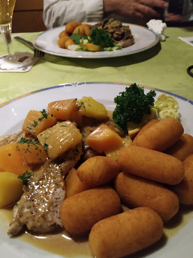 Read moreDas Essen war lecker (Forelle und Pommes Frites). Das Gemüse fehlte bei der Forelle allerdings ein wenig. Das Eiscafé und Walnusseis mit Honig und Sahne zum Nachtisch waren sehr lecker ;) ! Die eine Bedienung (junge Dame) wirkte sehr müde, gelangweilt und fast ein wenig leblos. Die zweite Bedienung war sehr freundlich und witzig. Leider Abzug für das "Hofaquarium" hinter dem Gasthof. Zwei Kois und ein paar kleinere Fische in einem viel zu kleinen Aquarium! Sand oder runde, stumpfe, kleine Steine für den Boden wäre das Mindeste! Der Boden des Aquariums war nicht mal vollständig mit kleinen, spitzen Kieselsteinen bedeckt. Pflanzen, grössere Steine, geeignete Äste oder andere Versteckmöglichkeiten fehlten KOMPLETT!!! Das ist Tierquälerei auf einem anderen Niveau, hätte ich die Möglichkeiten würde ich diese armen, leidenden Tiere, die nur langsam auf ihr Lebensende warten SOFORT dort rausholen. Auch keine Filter für das Aquariumwasser waren sichbar!! Tierquälerei werde ich SICHER nicht...