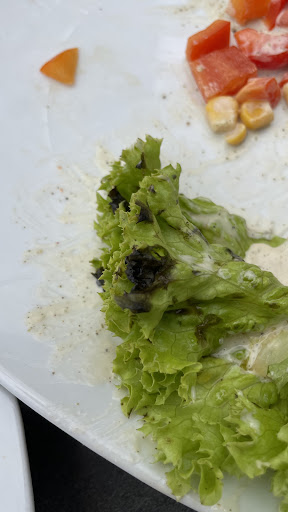 Der Salatteller war für 8€ (in unserem Fall mit toppings fast 13€) eine absolute Katastrophe. Der Teller wurde nicht wirklich angerichtet, es sah mehr aus als hätte man einfach sporadisch nach Liste alles nacheinander irgendwie auf den Teller gelegt. An sich bisher nur etwas teuer aber nicht schlimm. Leider musste ich aber feststellen das ALLE Salatblätter braune Ränder hatten. Und sich sogar faulige Blätter auf meinem Teller befanden.