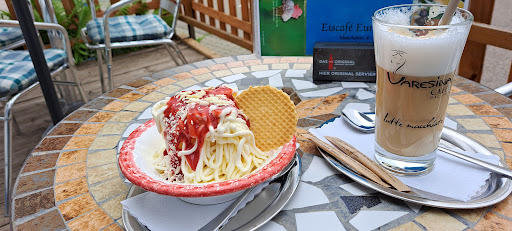 Das Preisleistungsverhältnis stimmt hier absolut nicht. Hätten wir einzelne Kugeln im Becher bestellt wären wir besser dran gewesen als beispielsweise mit Amarena Becher (3 Kugeln, 4 Kirschen minimal Sosse). Geschmack war okay aber auch nicht überragend. Im Joghurtbecher schwamm das Eis direkt am Tisch schon.