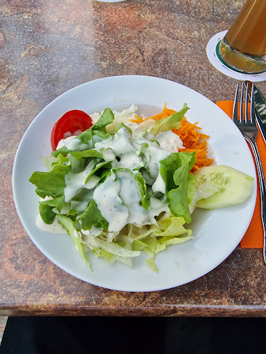 Read moreHmm, ganz schön zum draußen sitzen. Essen ganz ok, gut bürgerlich. Allerdings haben mich zwei Dinge gestört. Im Beilagensalat habe ich das Glied einer Metallkette (Schmuck) gefunden, hätte gefährlich werden können für meine Zähne. Bedienung hat mir - quasi zur Entschuldigung - auf die Schulter geklopft und über den Rücken gestreichelt. Hmm, ich bin nicht so touchy-touchy, lieber wären mir keine Metallstücke im Essen. Dann fragte ich bei der Bestellung, ob die Jägersoße beim Schnitzel aus frischem Champignons gemacht würde, was bestätigt wurde. Tatsächlich war nur die Hälfte der Pilze frische Champs, die andere Hälfte waren auf Nachfragen nun plötzlich „Waldpilze“. Davon stand ja nun gar nix in der Karte. Waldpilze möchte ich nun wirklich nur essen, wenn ich sie selbst gesammelt und bestimmt habe. Außerdem lasse ich mal dahingestellt, ob es wirklich frische Pilze waren oder nicht doch aus dem Glas, waren nämlich etwas schmierig in der...