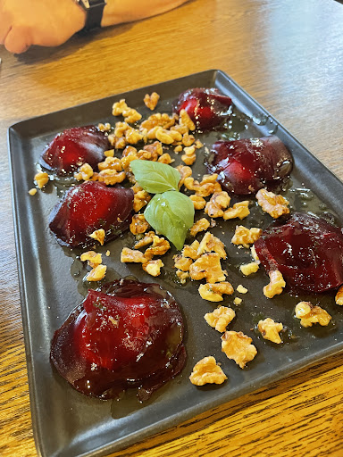 Leckeres Essen und freundlicher Service Wir wurden bereits an der Tür herzlich begrüßt und durften uns einen Tisch frei auswählen. Den ganzen Abend über hat uns eine sehr freundliche und aufmerksame Servicekraft begleitet – das hat den Aufenthalt angenehm gemacht. Als Vorspeise haben wir uns gefüllte Rote Bete mit Schafskäse und Walnüssen geteilt – geschmacklich top und auch sehr schön angerichtet. Der Hauptgang, eine Fischplatte für zwei Personen, war mehr als reichlich und hat ebenfalls sehr gut geschmeckt. Ein kleiner Kritikpunkt: Die Anrichtung könnte etwas überarbeitet werden. Die Beilagen (Kartoffeln, Reis) lagen direkt unter dem Fisch, was sie etwas matschig gemacht hat. Auch die auf der Platte verteilten Muscheln waren optisch zwar schön, aber kleine Muschelstücke im Reis haben das Essen etwas schwierig gemacht. Dieses Feedback haben wir auch direkt vor Ort weitergegeben – hoffentlich kann es umgesetzt werden. Insgesamt ein sehr schöner, harmonischer Abend mit leckerem Essen – wir kommen gerne wieder!
