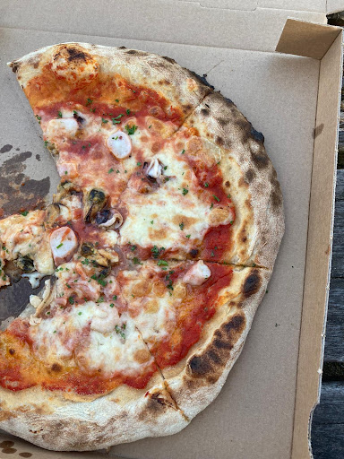 Die Pizzen waren maximal mittelmĂ€Ăig. Wobei der Teig da wohl das Beste daran war. Gerade die Pizza Frutti di Mare war eine Frechheit die seines gleichen sucht. Die MeeresfrĂŒchte beschrĂ€nkten sich auf 4 Mini Muscheln und 2 winzige StĂŒcke Calamari. Der Rest war billigster Surimi aus gepressten Fischresten. Das kennt man sonst nur vom Ostblock zu Zeiten der Sowjets.