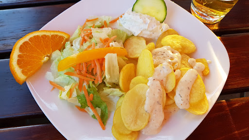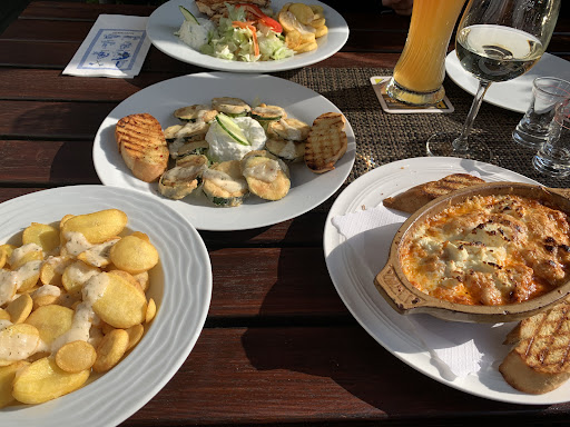 Read moreWir waren (vor Corona) einmal hier und hatten einen schönen Platz im Biergarten. Service war freundlich, Gyros war lecker aber die Calamari haben den Körper meiner Begleitung leider noch am selben Abend unangenehm wieder verlassen.🤮 Heute haben wir einen zweiten Versuch gestartet und Essen abgeholt (5 Minuten Fahrzeit). Die Suzuki, das Tzatziki und das Knoblauchbrot waren lecker aber das restliche Fleisch war sehr trocken. Die Aubergine hat nach nichts geschmeckt und der Gemüsereis war unterirdisch: weder gewürzt noch hatte er irgendeinen Biss. Salat hatte kein oder nur minimal Dressing und das Lamm war doch etwas zu zäh.. Für knapp 50€ sind wir...