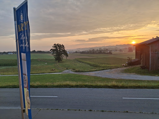 Die Anlage ist wunderschön inmitten von Wiesen und Feldern gelegen!||||Wir hatten wĂ€hrend zwei Tagen die schönste Aussicht und die wundervollsten SonnenunterĂ€nge!||||Wenn man mit dem Auto ankommt und das Auto parkiert, so liegen die ParkplĂ€tze zwischen dem Restaurant und dem Gasthaus. Der Kiesplatz fĂŒr die Fahrzeuge ist sehr gross und es besteht sogar eine hoteleigenen Elektro-Tankstelle.||||Zwischen Restaurant und Gasthaus steht auch ein Kinderspielplatz mit Schaukel, Rutsche etc.. Daneben können Kinder Hasen beobachten.||||Die ganze Anlage (von Restaurant, Restaurant draussen, Spielplatz, Eingang zum Gasthaus, Flur im Gasthaus, Zimmer) ist sehr liebevoll eingerichtet. Auf jedes noch so vorhandene Detail wurde geachtet. Meine Frau und ich haben sofort bemerkt, dass sich jemand sehr MĂŒhe gegeben hat. Wir durften dann auch den Besitzer (ein Ă€lterer Herr) kennenlernen, der uns dann auch weitere Zimmer gezeigt hatte, damit wir beim nĂ€chsten Mal wissen, welches wir buchen möchten.||||Wir hatten ein klassisches Doppelzimmer und es war sehr schön, sauber und gerĂ€umig. Jedes Zimmer hat einen Sitzplatz mit einem Tisch und zwei StĂŒhlen. Im Zimmer stand ein grosses und bequemes Doppelbett mit Nachttischchen, dann ein weiteres Tischchen mit zwei Sesseln und ein TV. Der Kleiderschrank war auch sehr gross. Eines der schönsten und saubersten Hotelzimmer bzw. Hotelanlagen, die wir je gesehen hatten.||||Schon wĂ€hrend dem Aufenthalt, sagten wir zueinander, dass wir es kaum erwarten können, nochmals hierher zu kommen.||||Die einzige Kritik:||Die Bedienung im Restaurant fanden wir ĂŒberhaupt nicht freundlich. Wir hatten nie das GefĂŒhl willkommen zu sein (obwohl der GeschĂ€ftsfĂŒhrer extrem freundlich, hilfsbereit und professionell war). Warum, weiss ich nicht. Schon beim ersten FrĂŒhstĂŒck dachten wir, dass wir stören. Am Abend wars dann aber ganz schlimm, als das Restaurant mit GĂ€sten aus der Umgebung gefĂŒllt war und wir (HotelgĂ€ste) fast schon Störfaktoren waren.||||Das Personal im Restaurant muss unbedingt neu geschult werden!...