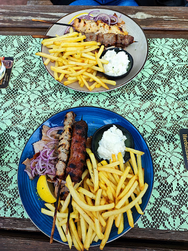 Read moreAuf der Suche nach etwas Neuem wurden wir hier fündig beziehungsweise nach mehrmaligen Verfahren. Es gibt einen schönen Außenbereich zum Sitzen und Essen, aber wir haben uns für einen Platz im Haus entschieden. Optisch macht es hier definitiv viel her. Sehr rustikal und stimmig mit schöner Deko wurden wir zum Verweilen eingeladen. Die Kerze auf dem Tisch wurde sofort angezündet. Unser Essen war ein Traum. Das Fleisch war zart und saftig und die Pommes ebenso gut. Der Tzaziki war mein persönliches Highlight, wirklich der beste den ich je gegessen hatte. Der Beilagensalat hatte ein gutes Dressing und schmeckte ebenfalls sehr gut. Unser Kritikpunkt ist zum einen die Bedienung bzw. der Service. Uns wurde die Karte gereicht und gleichzeitig, wenn nicht schon vorher, nach unserer Bestellung gefragt. Bei der Bestellung wurden wir auch noch gefragt, um welche Gerichte es sich handelt und welches Fleisch jeweils aufgezählt wird, so dass wir mehrfach unsere Gerichteauswahl vorlesen mussten. Zum anderen die gesamten Aufpreise, einmal wird ein Aufpreis von 1,00 € verlangt, um seine Reste einpacken zu lassen. Das ist meiner Meinung nach Teil des Service den ein Restaurant zu erfüllen hat. Außerdem wird bei den Kinderportionen ein Aufpreis von 2,00 € verlangt, wenn es sich um einen Erwachsenen handelt. Das finde ich fast schon unverschämt, da man sich nur für die Kinderportion entscheidet, um bei kleinem Hunger eine ebenso kleine Portion zu bekommen und dann sollte es selbstverständlich sein auch weniger zahlen zu müssen. Sowie ein Aufpreis für die hausgemachte Soße von 2,80 €. Ansonsten hat das Preis-/Leistungsverhältnis gestimmt und es war ein sehr gelungener Abend in einem guten Restaurant, den wir bestimmt...