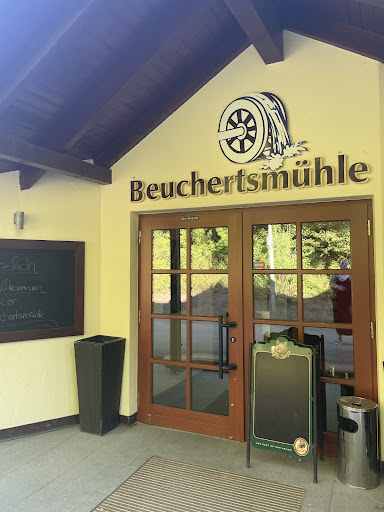Bei unserem Besuch in der Beuchertsmühle wurden wir geschmacklich gut bedient. Da wir reserviert hatten konnten wir uns direkt einen Platz aussuchen und wurden bedient. Unsere Kerze wurde nicht angezündet. Bis unsere Getränke gekommen sind mussten wir etwas länger warten, aber die Vorspeisen kamen sehr schnell und unsere Hauptgerichte auch. Sämtliche von uns bestellten Gerichte haben gut geschmeckt, vor allem die Grünkernsuppe war das Highlight für mich. Die Schweinemedallions waren sehr zart und lecker sowie die Pfifferlingrahmsoße. Das Putensteak mit gebackener Banane und Currysoße ist eine sehr spannende Kombination, die ich vorher noch nie gesehen hatte, aber sehr gut zusammen passt und schmeckt. Die Kroketten von unseren 3 bestellten Gerichten wurden leider alle zusammen auf einem Teller serviert. Das fanden wir nicht gut und hätten lieber jeweils unsere eigene Schale bekommen. Sowas habe ich auch noch nie gesehen, außer man bestellt extra etwas zusammen. Die Toiletten sind sehr modern, doch der Eingang mit dem klebenden Zettel zum Türe öffnen hätte schöner gemacht werden können. Unser großer Kritikpunkt ist die Speisekarte beziehungsweise die nicht vorhandene. Auf jedem Platz lag ausschließlich ein doppelseitiges DIN A4 Blatt mit den Gerichten, wobei es eine Auflistung der Getränke mit Preisen absolut nicht gab. Das fanden wir alles andere als gut und billig sieht es auch aus. Sehr unpassend zur Beuchertsmühle, da die Preise auch nicht gering sind. Dennoch waren wir geschmacklich begeistert und kommen...