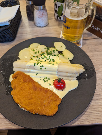 Zu dritt im Biergarten gesessen. Hier ist es schön schattig dank der großen Sonnenschirme und des mega Walnussbaumes. Personal sehr höflich, freundlich, spaßig und gut gelaunt. Sehr schnelle Bedienung. Internationale Getränkekarte. Salatteller zu den Speisen war köstlich mit einem super Dressing 😋. Hatten verschiedene Gerichte, alle sehr ansprechend zubereitet und lecker. Jeder bekam einen Salat dazu, vielseitig mit gutem Dressing. Die Oma hätte auch von der Kinderkarte bestellen dürfen, wenn der Hunger nicht so groß ist! Neuer Pächter seit letztem Jahr aber nicht schlechter geworden 🤣 Empfehlenswert! Wir kommen...