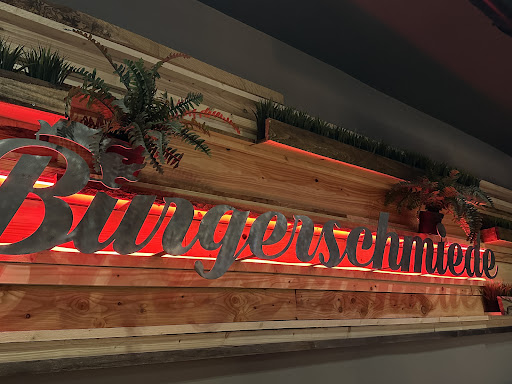 ● Einrichtung/Konzept - Gerade bei den Burgerläden gibt es ja viele geniale Läden mit coolen Einrichtungen und Designs. Hier kann sich die Burgerschmiede ganz oben einordnen. Das hier ein Kreativer Kopf und Künstler mit an Bord ist kann man nicht übersehen, Chapeau!!! Von der Inneneinrichtung, über das Lichtkonzept bis hin zum Tafelgeschirr und Schälchen alles stimmig stylisch!!