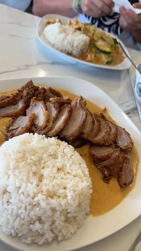 Read moreSchlechtester „Asia“ Imbiss ever ! Meine Ansprüche sind nicht überzogen oder die höchsten aber was dort serviert wird, hat außer dem Reis nichts mit Asiafood zu tun. Ich hatte zwei Gerichte, dabei fiehl eines besonders katastrophal auf. Das „rote“ Curry mit Huhn. Die Konsestenz glich dem von Rotze gemischt mit Rahmsoße, kurioserweise schmeckt es auch etwas danach. Keine Ahnung was die da zum unnötigen verdicken ihrer „Grundmasse“ nehmen aber auch geschmacklich absolut unterirdisch. Bei vielen Asiaten hier in der Region gibts ja ohnehin nur den “Einheitsbrei“, der aber trotzdem schmeckt. Das hier war zwar mal was ganz anderes aber im negativen Sinne. Verglichen mit dem Duk Duk in Meckenbeuren, schlicht und ergreifend nicht verzehrbar ! Und nebenbei für die „große“ Portion für 6,20€ auch nicht günstiger...