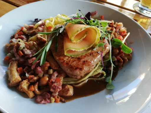 Haben heute Abend spontan einen Platz auf der Terrasse bekommen (beim Versuch einer telefonischen Reservierung eine halbe Stunde vorher wurde mitgeteilt, dass innen ausreichend Plätze zur Verfügung stehen und außen mit einer Wartezeit von 10-15 min zu rechnen sei). Nachdem das bestellte Getränk in 0.2 l, statt 0.4 l serviert wurde, hat unser Kellner den "Fehler" sofort bemerkt und das Getränk umgetauscht. Ich habe vorgeschlagen, einfach noch ein 0.2-Glas zu bringen (da man das dann nicht wegschütten müsste), aber das hätte man dann wohl nur als 2 x 0.2 abrechnen können und wäre teurer geworden, als 1 x 0.4 l. Im Hinblick auf Lebensmittelverschwendung könnte man hier zukünftig pragmatischen Lösungen den Vortritt gewähren. Vorab wurde der Beilagensalat geliefert, für meinen Geschmack war es viel zu viel Dressing, aber ansonsten gut. Nachdem für ein paar Sekunden das falsche Essen geliefert wurde, was wir mit Humor nahmen, ließen wir uns das richtige Essen schmecken. Es war auf jeden Fall nett angerichtet und von der Portionsgröße angemessen. Mein Freund hatte das Schweine-Steak mit Pfifferlingen und fand, dass es jeden Cent wert war. Ich hatte Hähnchen, überbacken mit Birne und Gorgonzola, dazu Kräuterreis. Für meinen Geschmack war es ein bisschen zu viel Gorgonzola, der auch nur über zwei Dritteln des Hähnchens verteilt war, die Birne leider nur auf einem Drittel des Hähnchens. Die Bratensauce in Verbindung mit dem Käse ließ das Gericht ein wenig zu salzig erscheinen. Wäre überall gleich viel Käse und Birne gewesen, wäre es im Geschmack sicherlich angenehmer. Den Kräuterreis hatte ich mir anders vorgestellt (es steckte ein wenig Rosmarin drin), garniert mit einer grünen Paste. Es war eine interessante Kombination von Lebensmitteln, aber für meinen Geschmack nicht ganz das richtige. Über Geschmack lässt sich bekanntlich streiten, daher alles in allem 4 Sterne. Durch die Corona-Regeln war es zu zweit auf der Bank beim Essen ein wenig beengt, aber das muss man derzeit einfach so hinnehmen. Trotz der kleinen Pannen war das Personal sehr schnell, aufmerksam und freundlich! Wir würden bestimmt noch einmal hier essen gehen, wenn wir in...