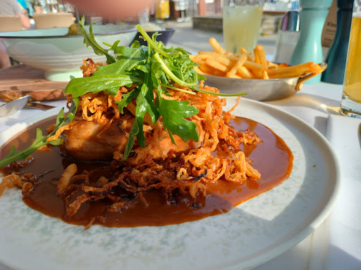 Read moreAls wir an der Promenade vorbei geschlendert sind, haben wir das Restaurant entdeckt. Draußen waren noch vereinzelt Plätze frei, uns war es aber zu windig. Wir sind dann rein gegangen und wurden schnell von einem Kellner angesprochen. Natürlich hatten wir nicht reserviert. In dem kleinen Gastraum waren fast alle Tische belegt. Bis zu einer gewissen Uhrzeit konnten wir einen der zwei verbleibenden Tische belegen. Die Zeit hat uns von Vorhinein genügt. Vermutlich ist es hier am besten zu reservieren. Weil es wirklich ein eher kleines Restaurant ist. Vermutlich hatten wir großes Glück, zu dieser Uhrzeit überhaupt einen Platz spontan ergattern zu können. Direkt wurden wir überaus freundlich von dem nun für uns zuständigen Kellner begrüßt. So eine herzliche und freundliche Person haben wir schon lange nicht mehr erlebt. Dieser Kellner (oder vielleicht Inhaber?) macht das Ganze mit Herzblut. Schnell wurden wir in der Karte fündig und haben eine Vorspeise und eine Hauptspeise bestellt. Die Zubereitungszeit war top. Schnell kam die Vorspeise und der Kellner hat immer und überall (nicht übertrieben) nachgefragt ob alles okay sei. Er war immer zuvorkommend und hatte auch einen flotten Spruch auf den Lippen. Zu der Zubereitung hatte er Vorschläge bezüglich des Gargrades. Auch dies war perfekt und auch perfekt auf dem Teller getroffen. Die Hauptspeise war ein Gaumenschmaus. Im Lokal war sehr angenehme Musik im Hintergrund. 10 Minuten vor Ende unseres Timeslots vom Tisch, wurden wir fertig mit dem Essen. Alles in allem war es ein perfekter Abend. Das Essen und insbesondere der auswegöhnlich gute Gastgeber haben dem Besuch zu einem echten Erlebnis gemacht. Dafür bezahlt man gerne den einen oder anderen Euro mehr. Wobei z.B. der Zwiebelrostbraten in allen Lokalitäten preislich im selben Rahmen ist. Danke für den schönen Abend und das gute Essen. Wenn wir mal wieder in der Nähe sind, kommen wir auf jeden Fall wieder. Dann aber mit einem...