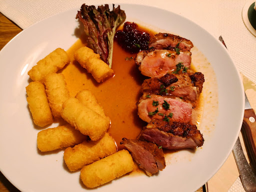 Read moreDie Vorreservierung per Telefon für 4 Personen gegen 17:20 Uhr verhalf uns zu einem schönen Platz in der Mitte des Restaurants. Die Suche nach dem Essen in der Speisekarte dauerte fast länger als die Zubereitung und Lieferung an unseren Tisch. Das Essen war für jeden von uns exzellent und die Preise sind in einem angenehmen Rahmen. Die Bedienung ist sehr freundlich und auch sehr fix. Vielen Dank hierfür. Wir kommen wieder. Die Essen waren: Grillteller Bern Schweinemedaillions Hubertus mit Pommes Pfeffersteak (Medium) mit Spätzle Entenbrust auf Honig-Orangensauce mit Kroketten Nachtisch: Ice-Crisp mit Eierlikör und Sahne Alle Hauptgerichte...