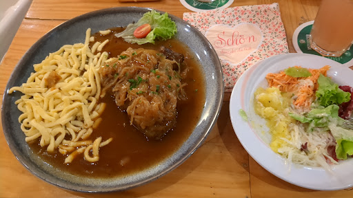 Wir waren eher zufällig in diesem schönen Landgasthaus, als Abschluss einer Fahrradtour an der Jagst bzw. Kocher. Es hat uns wunderbar geschmeckt. Meine Frau bestellte sich einen Zwiebelrostbraten und ich Schnitzel. Beides war frisch zubereitet, das Fleisch zart und schmackhaft und der Salat als Beilage ebenso frisch und mit einem sehr guten Dressing. Zusammen mit Trollinger Lemberger alles bei einem sehr guten Preis-Leistungsverhältnis um die 40€. Sehr aufmerksame und nette Bedienung. Der Koch bzw. Besitzer kam auch mal raus.. Es gibt auch freie Plätze im Biergarten. Wir waren so angetan, dass wir am nächsten Tag wiederkamen und eine Spezialität des Restaurants genossen haben: Maultaschen in verschiedenen Varianten. Sehr zu empfehlen!! Wir kommen gerne wieder nicht...