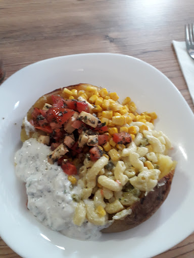 Read moreEine gelungene Alternative zu den unzähligen Dönerbuden. Grundsätzlich würde der Hauptartikel die Ofenkartoffel völlig ausreichen. Ich würde gar nicht so viele Andere Dinge wie Bürger oder Dinnete anbieten. Dennoch auch hier eine witzige Kombination aus Westlichem Fast Food mit Orientalischen Gewürzen. Die Kreidetafeln würde ich lieber selbst beschreiben als ausgedruckte Zettel darauf zu kleben und vielleicht noch eine etwas "leichtere" Variante der Kartoffel anbieten. Etwa ohne Butter und Käse. Nur mit Sauerrahm oder ähnliches. Oder sich eine Vegane Variante ausdenken. Ich hoffe der...