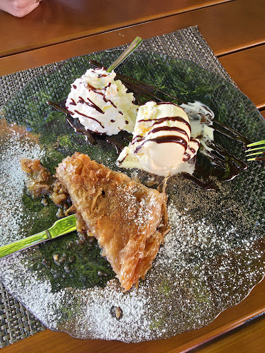 Za desert, baklava sa sladoledom i šlagom je apsolutni must – bogata, svježa i savršeno balansirana.
