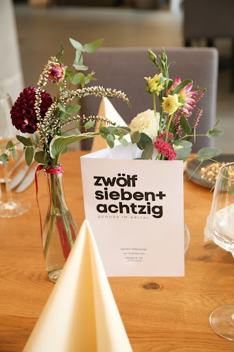 Nachdem wir vom Zwölf87 schon begeistert waren als Brunchlocation, haben wir uns entschieden unsere Hochzeit die im September stattfand dort zu feiern. Die Kommunikation war vom ersten Tag total herzlich und unkompliziert. Uns wurden tolle Vorschläge gemacht, aber auch unsere Wünsche waren nie ein Problem und konnten alle so umgesetzt werden. Bei Fragen oder (kurzfristigen) Änderungen war Kevin stets entspannt und für uns da. Da die Räumlichkeiten von alleine schon eine wahnsinnige Ausstrahlung haben, hatten wir uns für weniger Deko entschieden. Diese konnten wir einen Tag vorher vorbei bringen und wir mussten so nicht selbst schmücken. Mein Blumenstrauß, der Ansteckstrauß sowie die Tischsträuße wurden liebevoll und genau nach meinem Geschmack von einer Angestellten des Locals gebunden. Den Sektempfang wollten wir ursprünglich im Innenhof machen. Da es allerdings regnete, verlagerten wir diesen in die Vorhalle des Spitals, der aufgrund der tollen Kunstausstellung und dem Ambiete eine genauso schöne Location war wie der Innenhof. Uns war wichtig, dass wir die Hauptgerichte ungern als Buffet haben wollten. Daher entschieden wir uns für die Vor- und Nachspeisen für ein Tischbuffet. Die Hauptspeise wurde dann als Menü serviert. Dabei war es so, dass natürlich auf Grund der großen Gästezahl leichte Zeitversetzungen bei dem Servieren waren, jedoch jeder Tisch als Gruppe immer zeitgleich essen konnte. Im Ablauf war dies für unsere Gäste und uns aber gar nicht bemerkbar. Für die Kinder wurde individuell mit den jeweiligen Eltern entschieden, was den Kindern serviert wird. Alle Servicekräfte waren den ganzen Abend wahnsinnig freundlich und hatten die Wünsche unserer Gäste stets im Blick. Eine Hochzeitstorte bestellten wir extern, aber auch hier gab es keine Probleme mit der Aufbewahrung und dem Servieren. Unsere Gäste hatten im Nachhinein nur Lob, sei es für das unglaublich leckere Essen als auch für die Organisation. Ich kann im Nachhinein nur sagen, dass ich dem ganzen Team wahnsinnig dankbar bin für diese tolle Hochzeitsfeier, die wir dort feiern konnten und dass sowohl die Planung als auch der große Tag durch die Expertise des Zwölf87 für uns total entspannt und unvergesslich war. Danke für eure Professionalität und eurem Engagement!